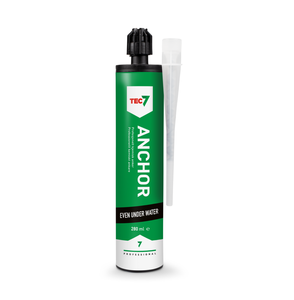 ANCHOR er et profesjonelt kjemisk anker for rask, enkel, robust og langvarig montering, forankring, festing og reparasjon. Kan brukes på mur, stein og fjell i temperaturer ned til -10 °C. ANCHOR er et to-komponent kjemisk anker, basert på vinylesterharpiks. Komponentene blandes korrekt i blanderøret på vei ut av patronen. ANCHOR er ETA-sertifisert for bruksområder, brannsertifisert og dokumentert vanntett, samt at den kan brukes i både sprukket og usprukket betong. Den kan brukes på fuktige overflater, også under vann, og innendørs da den er ftalat- og styrenfri. ANCHOR herder raskt uten å krympe eller ekspandere, blir sterkere enn underlaget og og tåler høye belastninger. Etter herding er ANCHOR motstandsdyktig mot UV-stråler, kjemikalier, klor- og saltvann, samt brann og tåler temperatur fra -40 °C til +80 °C (opptil +120 °C i kortere perioder). ANCHOR kan lagres i minimum 18 måneder, selv etter åpning hvis korken er skrudd godt på etter bruk.